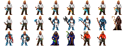 This is the big one. I’m not going to post the entire humans file here, but I’ll repost the “sample humans”. They are made up of multiple bits that I layer on top of each other- body, head, cloak, weapon, like that. Many of them have animations, but I am open to someone saying “I have a better idea.” In fact I’m open to a general redo on the humans- I have some dissatisfactions that I’ll discuss further with whoever tackles this section, and we’ll see what we want to do with it.